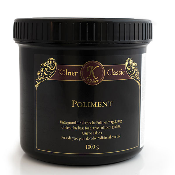 Kolner Poliment -- also known as bole -– is a clay-like substance. Bole is used to provide the base colour underneath gold and other leaf when water gilding. This product comes supplied as paste, with the clay mixed with water, but requires mixing with gelatin or rabbit skin glue before it is ready for use. Once mixed into a useable bole the product is laid over a surface prepared with gesso in multiple thin coats until the desired depth of color and surface finish is achieved, then the gilder proceeds with the rest of the water gilding process. Kolner Classic Poliment boasts excellent covering power and no fish-eyeing as it dries.